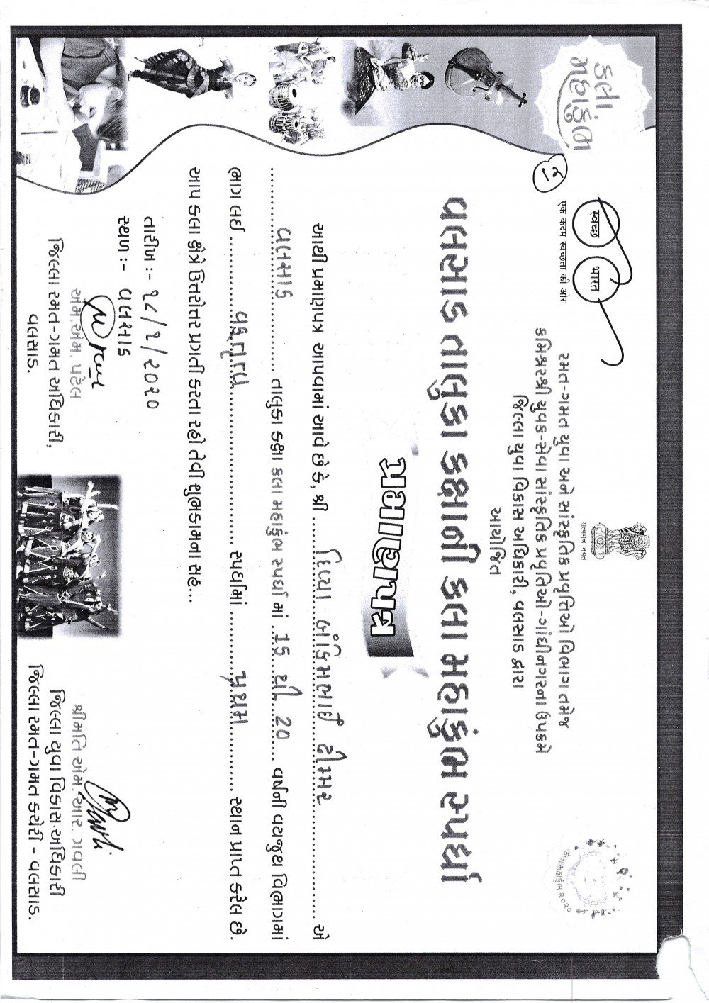 Ku. DivyaDhimmar won 1st prize at District Level Kala Mahakumbh held at Ava Bai High School, Valsad.